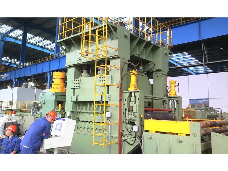 分輥驅(qū)動(dòng)技術(shù)的采用使中厚板也實(shí)現(xiàn)了線性遞減壓下的矯正方式,提高了機(jī)械效率和- -次通過機(jī)器的矯正精度,符合鋼板矯正規(guī)律。由于壓彎量逐漸減少,相對(duì)于平行壓彎的大彎形而言,減少了材料總的變形程度。因此,總矯正力和總功率消耗均會(huì)降低,從而節(jié)約了能耗。