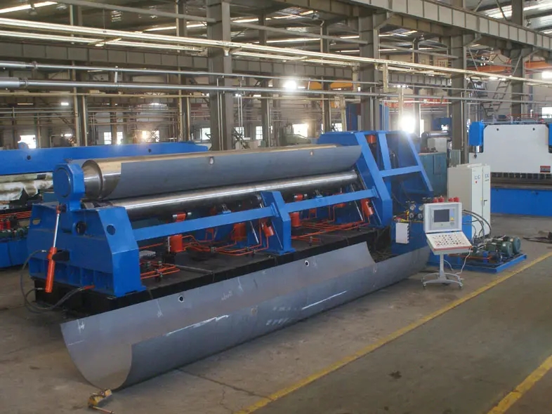 機(jī)器的上輥可以垂直和水平移動。垂直提升是液壓傳動。液壓缸中的液壓油作用在活塞桿上,以獲得水平運(yùn)動。扭矩通過渦輪桿箱、渦輪滾軸和螺桿機(jī)構(gòu)傳遞,以驅(qū)動上輥。滾筒的水平運(yùn)動,下輥只旋轉(zhuǎn)為液壓折彎機(jī)提供扭矩,下輥配備了可調(diào)節(jié)的怠速滾筒,上輥呈滾筒形狀,這提高了產(chǎn)品的直線度。它適用于各種橫截面形狀的拖車的油罐的滾動。EZHONG是中國領(lǐng)先的液壓卷板機(jī)制造商之一,我們以合理的價(jià)格出售高品質(zhì)的液壓機(jī)。